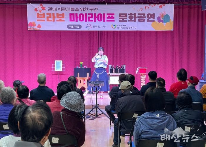 태산뉴스 이동욱 기자 | 광명도시공사는 하안노인종합복지관과의 협업으로 지난 10월 24일과 10월 31일 총 2회차로 관내 어르신 대상 문화공연인 ‘브라보 마이 라이프’를 성공적으로 마쳤다고 밝혔다.