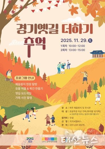 태산뉴스 김준수 기자 | 경기문화재단 경기역사문화유산원는 오는 11월 29일 토요일, 의주길에 위치한 파주 혜음원지 일대에서 초등학생 이상 자녀를 둔 가족을 대상으로 하는 역사 체험 프로그램 ‘경기옛길 더하기 추억’을 개최한다고 밝혔다.