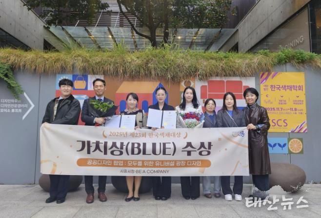 태산뉴스 이동욱 기자 | 시흥시는 ㈜비에이컴퍼니와 함께 추진한 거북섬 경관브릿지 원형광장과 보행로 일대에 조성한 ‘모두를 위한 유니버설 광장 디자인’이 지난 11월 8일 (사)한국색채학회가 주관한 ‘2025 한국색채대상’에서 블루영역 가치상을 수상했다고 밝혔다.