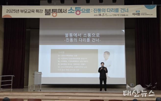 태산뉴스 이동욱 기자 | 안산시는 단원구청 단원홀에서 ‘불통에서 소통으로: 진통의 다리를 건너’를 주제로 부모교육 특강을 진행했다고 11일 밝혔다.