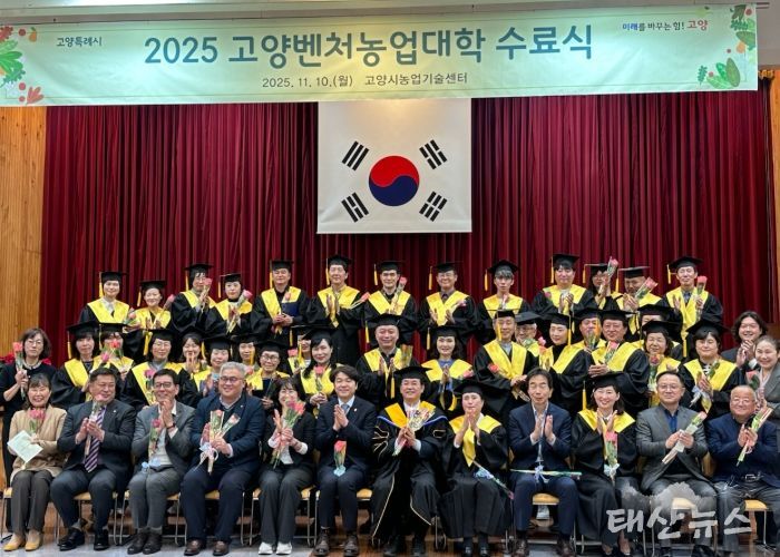 태산뉴스 이동욱 기자 | 고양특례시는 지난 10일 고양시농업기술센터에서 ‘2025년 고양벤처농업대학 수료식’을 열고, 53명의 수료생을 배출했다.