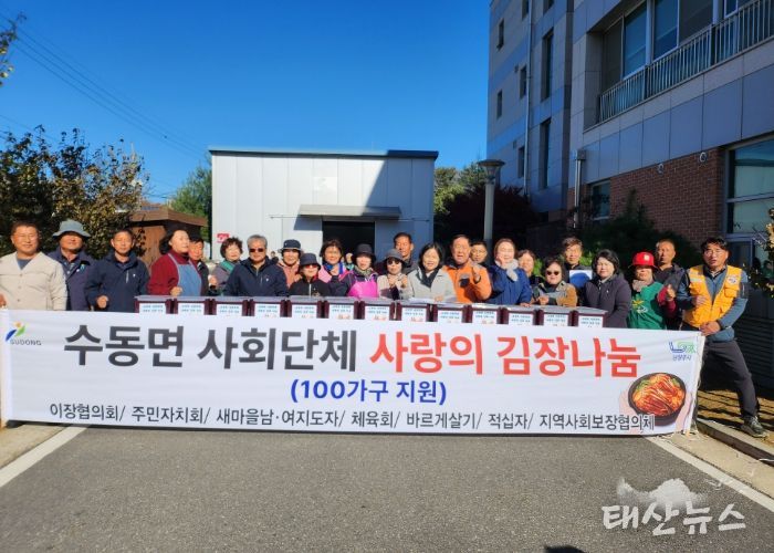 이날 마련된 김치 100통은 수동면 관내 독거노인, 장애인, 복지사각지대에 놓인 저소득층 가정 등에 전달됐다. 특히 각 사회단체별로 회원들이 김장 김치를 직접 전달하며 이웃의 안부를 살폈다.