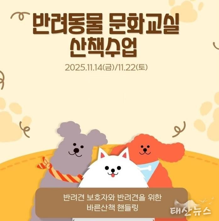 태산뉴스 이동욱 기자 | 시흥시는 오는 11월 14일과 22일 반려동물과 함께하는 문화교실(산책 수업)을 운영한다. 이번 프로그램은 시흥시에 동물 등록이 완료된 반려견을 양육하는 시민을 대상으로 진행되며, 수업별 30마리씩 선착순 모집한다.
