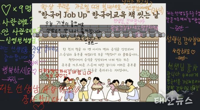 마지막 회기에는 ‘책씻는 날(책걸이)’을 주제로 한 종강 행사가 열렸다. 배움을 마무리하며 책을 정성껏 닦고 새로운 시작을 준비하는 전통 풍습 ‘책씻이’를 현대적으로 재해석해 참여자들이 학습 여정을 되돌아보고 서로의 성장을 축하하는 시간으로 꾸몄다. 청사초롱 만들기 등 전통문화 체험 프로그램도 함께 진행해 한국어교육과 문화체험이 어우러졌다.