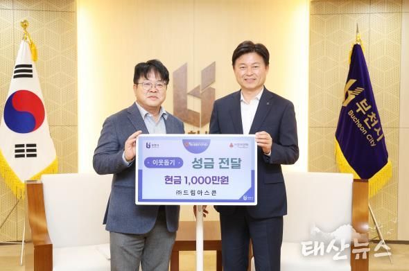 ㈜드림아스콘은 2020년부터 꾸준히 나눔을 실천해오고 있으며, 올해에도 1월 13일과 10월 27일 두 차례에 걸쳐 각각 1,000만 원의 성금을 기탁했다. 특히 10월 27일에는 경기도사회복지공동모금회를 통해 부천시 온스토어 및 온마음펀드 지원을 위한 지정기탁 성금을 전달했다.