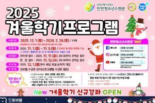 만안청소년수련관은 12월 1일부터 2026년 2월 28일까지 겨울학기 프로그램을 운영하며, 이번 학기에는 총 124개 강좌 225개 반이 개설되어 배드민턴, 탁구 등 체육활동부터 역사·과학·영어·요리·피아노 등 다양한 분야의 교육 콘텐츠를 제공한다.