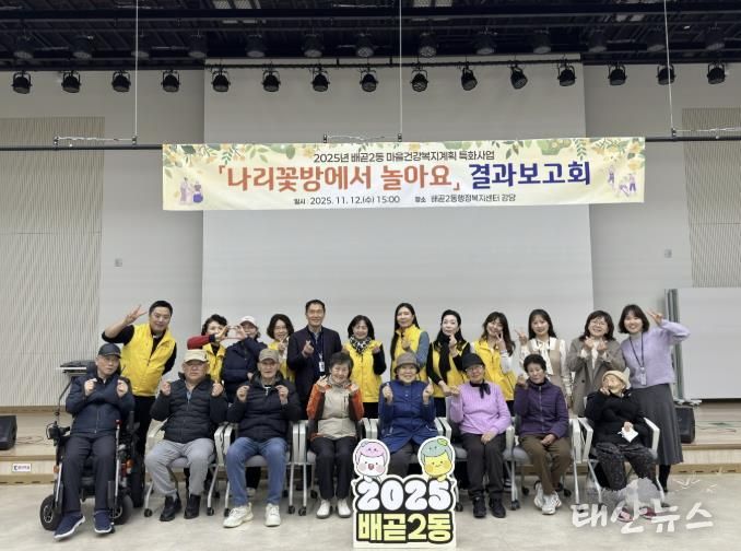 태산뉴스 이동욱 기자 | 배곧2동 지역사회보장협의체는 지난 11월 12일 ‘나리꽃방에서 놀아요’ 결과보고회를 개최하며 1년간의 활동을 마무리했다. 이번 행사는 사업에 참여한 어르신과 협의체 위원들이 함께 모여 그동안의 성과를 공유하고 서로에게 감사의 마음을 전하는 자리로 마련됐다.