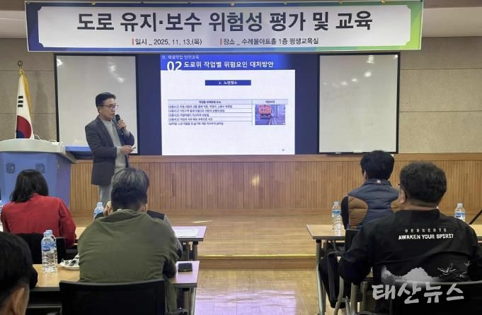 교육 주요 내용은 ▲제설 작업 시 현장에서 발생할 수 있는 위험요인 식별 및 안전수칙 준수, ▲위험성 평가 절차 및 개선방안, ▲제설 장비 운용 시 사고 예방을 위한 현장 대응 요령, ▲제설제 살포 및 적정 제설 계획 수립을 통한 도로 안전 확보 방안 등으로 구성됐다.