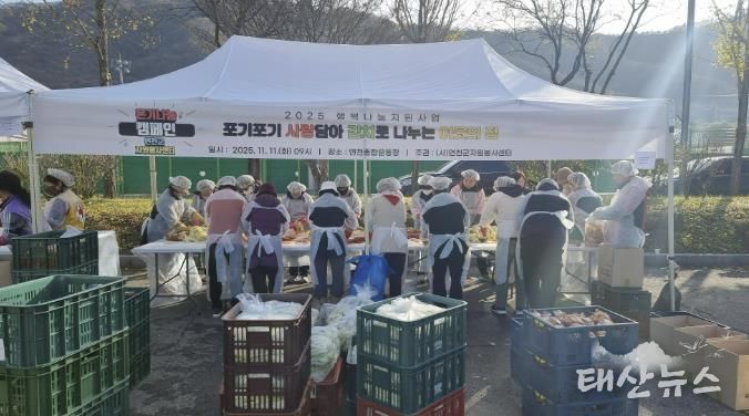 태산뉴스 이동욱 기자 | 연천군자원봉사센터에서는 지난 11일 연천종합운동장 남쪽 내부 도로에서 2025 행복나눔 지원사업 ‘포기포기 사랑담아 김치로 나누는 이웃의 정’ 김장 나누기 사업을 진행했다.