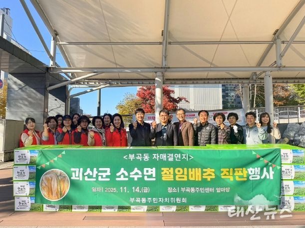 태산뉴스 이동욱 기자 | 의왕시 부곡동주민자치위원회가 11월 14일 부곡동주민센터에서 자매결연지 괴산 소수면의 대표 농산물 중 하나인 괴산절임배추 직거래 행사를 개최했다.