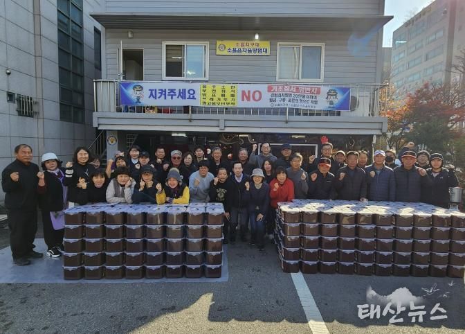 태산뉴스 이동욱 기자 | 소흘읍 남녀자율방범대·영삼자율방범대는 지난 14일부터 16일까지 사흘간 소흘읍자율방범대 앞마당에서 ‘2025년 사랑의 김장 나누기’ 행사를 개최했다.