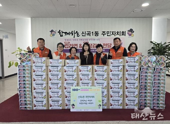 태산뉴스 이동욱 기자 | 의정부시 신곡1동주민센터는 11월 17일 신곡1동 주민자치회가 ‘100일간 사랑의 릴레이 배턴 잇기’에 동참해 취약계층을 위한 김장김치 40상자(5kg 단위)와 컵라면 40상자(6개입)를 기부했다고 밝혔다.