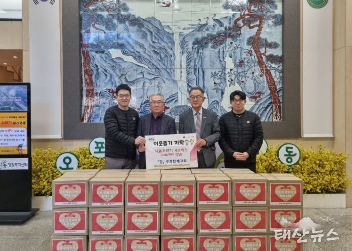 이에 대해 남기태 동장은 “지역의 어려운 이웃을 위해 따뜻한 나눔을 실천해 주신 주와함께교회 정진영 담임목사님과 신도분들께 깊이 감사드린다”며 “전해주신 물품은 도움이 필요한 가정에 소중히 전달하겠다”고 말했다.