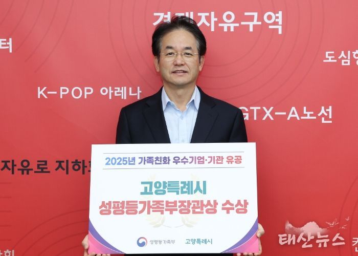 태산뉴스 이동욱 기자 | 고양특례시는 지난 20일 성평등가족부가 주최한 ‘2025년 가족친화 우수기관기업 정부포상 수여식’에서 직원의 일·가정 양립을 적극 지원한 공로를 인정받아 성평등가족부장관상을 수상했다고 밝혔다.