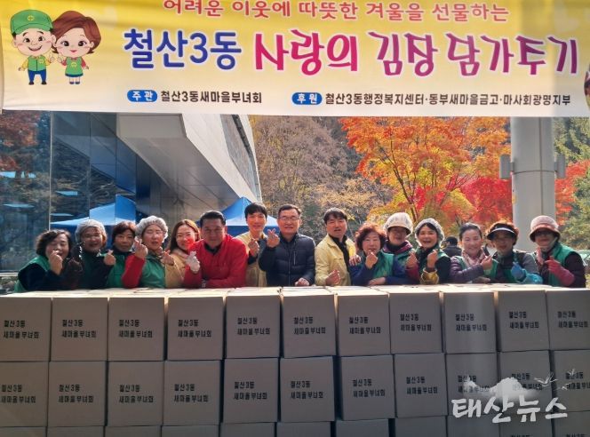태산뉴스 이동욱 기자 | 광명시 철산3동 새마을부녀회는 지난 19일부터 20일까지 이틀간 철산3동 행정복지센터 앞마당에서 ‘사랑의 김장 나누기’ 행사를 열었다.