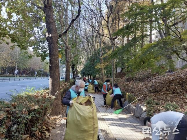 태산뉴스 이동욱 기자 | 2025년 11월 21일, 광정동행정복지센터는 통장협의회와 함께 가을철 가로수길 낙엽 청소를 실시했다.