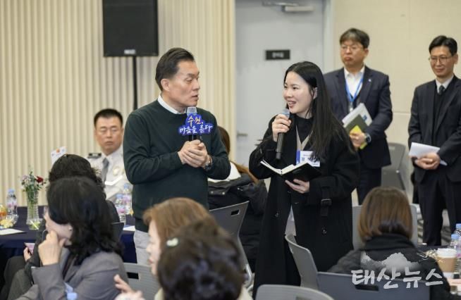 ‘2025 새빛만남- 수원, 마음을 듣다’에서 자주 볼 수 있는 풍경이다. 시민이 건의 사항을 이야기하면 담당 부서 책임자가 건의한 시민과 일정을 조율해 최대한 빨리 현장을 찾아 문제점을 확인하고, 개선 대책을 수립한다.