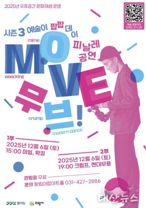 태산뉴스 김준수 기자 | 의왕시 이팝아트홀(왕곡로 74)이 12월 6일, 시즌3 ‘예술이 팝팝 데이’의 마지막 공연 ‘MOVE! 무브’선보인다.