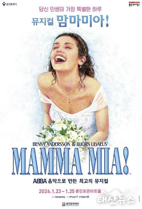 태산뉴스 이지율 기자 | 용인문화재단은 오는 2026년 1월 23일부터 25일까지 뮤지컬 ‘맘마미아!’를 용인포은아트홀에서 개최한다고 밝혔다. 관람 연령은 초등학생 이상으로, 겨울방학 기간 가족·친구·연인 등 남녀노소 누구나 함께 즐길 수 있는 대표 뮤지컬을 3일간 총 4회에 걸쳐 선보인다.