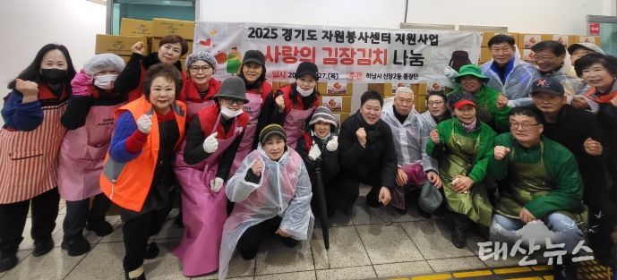 태산뉴스 이동욱 기자 | 하남시 신장2동 통장단은 경기도 자원봉사센터에서 공모한 “2025년 도민이 전하는 자원봉사 2차 김장지원 공모사업”에 선정되어 27일 자원봉사자들과 함께 김장김치를 정성스레 담궈 취약계층 200가구에 전달했다.