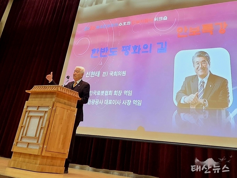 이날 강연은 신현태 전 국회의원이 초청 강사로 나서, 국회 외교·안보 분야에서의 경험을 토대로 한반도의 안보 상황과 미래 전략을 알기 쉽게 설명했다. 신 전 의원은 남북관계, 북한 핵 문제, 미·중 갈등, 국제안보 환경 변화 등을 분석하며 “지속 가능한 평화는 현실을 직시한 튼튼한 안보 위에서 가능하다.”고 강조했다.