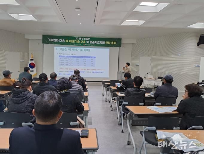 태산뉴스 이동욱 기자 | 안성시농업기술센터 남부농업기술상담소는 지난 12월 1일 ‘2025년 미양면 기후변화대응 벼 재배기술 교육’을 실시했다.