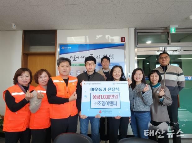 안성시 양성면 동항리에 위치한 ㈜조영이앤씨는 경량알루미늄 복합패널 제조업체로, 2019년부터 매년 꾸준히 성금을 기탁했으며, 특히 지난해에 이어 올해에도 1,000만 원을 기탁하여 지역 나눔문화 확산에 앞장서고 있다.
