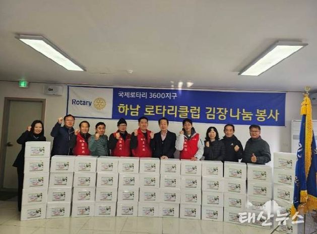 태산뉴스 이동욱 기자 | 겨울이 본격 시작된 12월 2일, 하남로타리클럽(회장 박재홍)이 저소득 취약계층 독거어르신 50세대에 전달할 김장김치 50박스(500kg)를 하남시(시장 이현재)에 기탁했다. 지역사회에서 꾸준히 봉사활동을 이어온 하남로타리클럽은 올해도 어김없이 김장을 담그며 ‘함께 사는 하남 만들기’에 뜻을 보탰다.