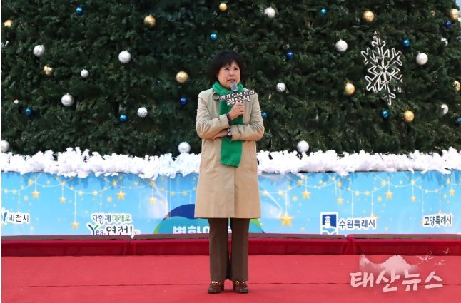 서성란 의원은 축사에서 트리 꼭대기 별이 가진 의미를 설명하며 “빛은 어둠을 이기고, 희망은 절망을 꺾는다”며 “성탄의 본래 의미가 우리 공동체 속에서 다시 살아나는 계기가 되길 바란다”고 말했다.