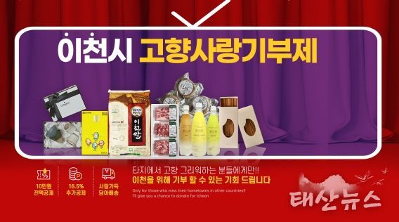 태산뉴스 이동욱 기자 | 이천시는 연말을 맞아 고향사랑기부제 참여 활성화를 위해 이벤트와 홍보영상 제작 등 적극적인 홍보를 진행하고 있다고 밝혔다.
