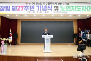 태산뉴스 이동욱 기자 | 수원특례시의회는 3일 권선구청 대회의실에서 열린‘대한노인회 수원시 권선지구 제27주년 기념식 및 노인지도자대회’에 참석해 어르신 지도자들의 노고를 축하하고 격려했다.