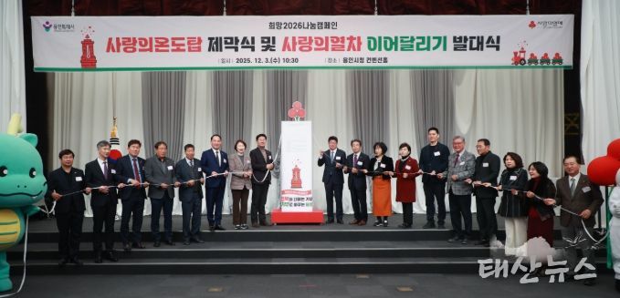태산뉴스 이동욱 기자 | 용인특례시는 3일 시청 컨벤션홀에서 ‘희망 2026나눔캠페인 사랑의 온도탑제막식 및 사랑의 열차 이어달리기 발대식’을 개최했다.