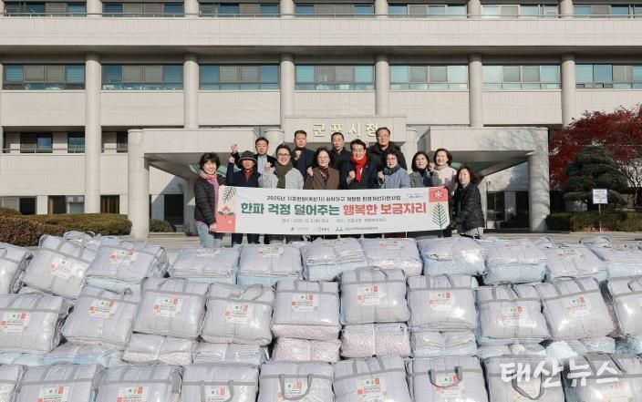 태산뉴스 이동욱 기자 | 군포시와 군포시지역사회보장협의체는 사회복지공동모금회와 함께 ‘2025년 기후변화(혹한기) 취약가정 계절별 환경개선 지원사업’을 추진하여 본격적인 추위가 시작되기 전에 취약한 가구의 겨울나기를 돕기 위해 저소득 취약가구 250가구에게 겨울 이불세트를 전달 했다.