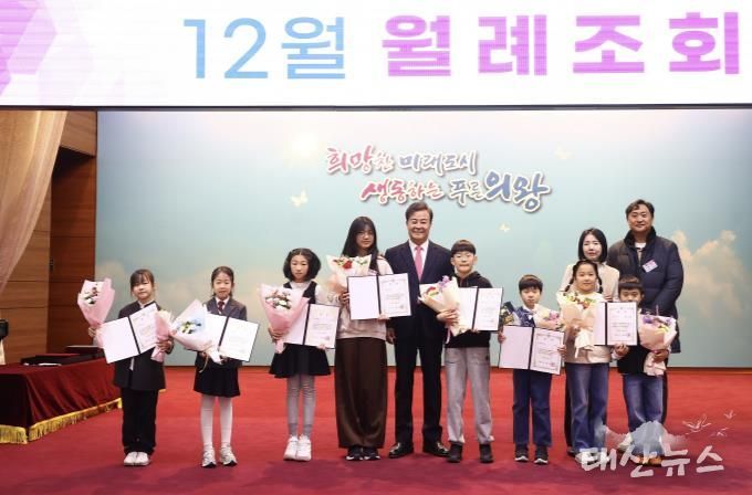 태산뉴스 이동욱 기자 | 의왕시는 12월 3일 시청 대회의실에서 열린 12월 월례조회에서 ‘어린이 천 권 읽기 사업’에 참여해 우수한 성과를 거둔 어린이와 가족을 대상으로 시상식을 진행했다.