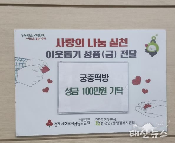 태산뉴스 이동욱 기자 | 동두천시 생연2동 궁중떡방은 겨울철 취약계층의 생활 안정을 위해 사용해 달라며 성금 100만 원을 기부했다.