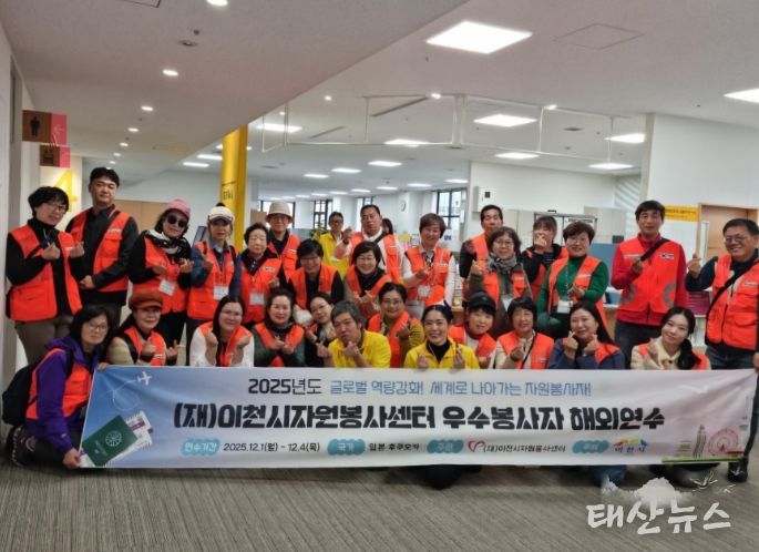 태산뉴스 이동욱 기자 | 이천시 자원봉사센터는 지난 12월 1일부터 4일까지 3박 4일간 우수자원봉사자 24명을 대상으로 일본 후쿠오카에서 해외문화탐방 및 연수를 진행했다고 밝혔다.