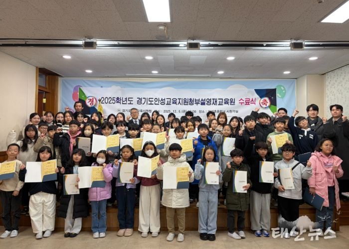 태산뉴스 김준수 기자 | 안성교육지원청은 12월 5일, 안성초등학교 시청각실에서 2025학년도 안성교육지원청부설 영재교육원 수료식을 개최했다. 이번 수료식에는 영재교육원 관계자, 학생, 학부모 등 150여 명이 참석하여 성황리에 진행됐다.