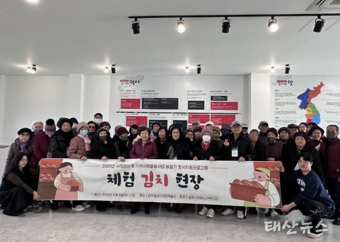 태산뉴스 이동욱 기자 | 양주시희망노인복지관이 지난 4일 동절기를 맞아 어르신들의 정서적 안정감 향상과 건전한 여가활동 지원을 위해 양주골김치체험박물관에서 동절기 정서적 지원 프로그램 ‘체험 김치 현장’을 운영했다.