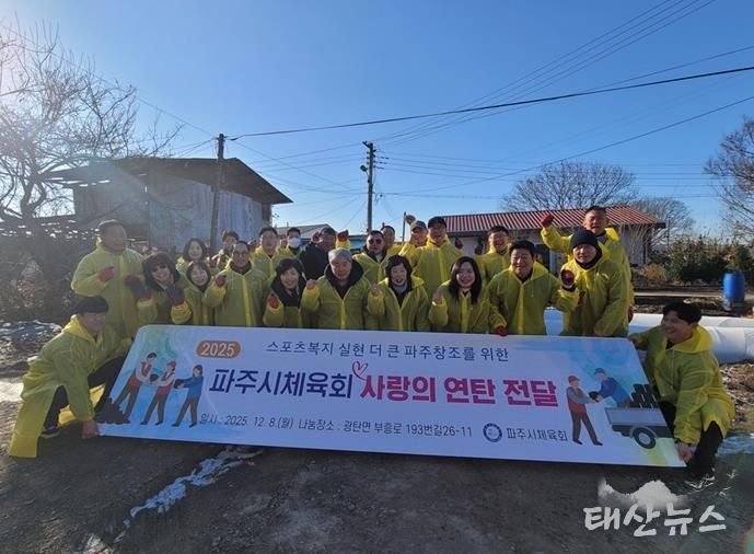 태산뉴스 이동욱 기자 | 파주시는 파주시체육회가 지난 8일 겨울 한파로 어려움을 겪는 이웃들을 위해 녩사랑의 연탄 전달’봉사 활동을 진행했다고 밝혔다.