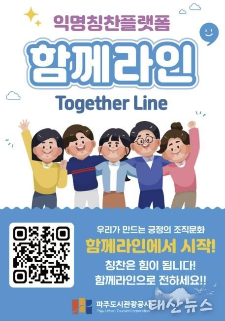 태산뉴스 이동욱 기자 | 파주도시관광공사는 직원과 고객이 함께 참여하는 스마트 익명 칭찬 플랫폼 ‘함께라인(Together Line)’을 12월 초부터 도입했다.
