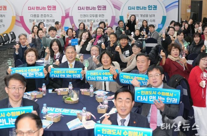 태산뉴스 이동욱 기자 | 수원특례시는 10일 시청 중회의실에서 ‘세계인권선언의 날(1948년 12월 10일) 77주년 기념식’을 열고, 인권의 가치를 되새겼다.