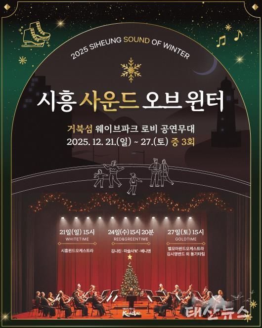 빙판 위에서 몸을 녹인 뒤에는 따뜻한 음악으로 한 해를 마무리할 수 있다. 시는 거북섬 스케이트장 개장을 기념해 지역 문화예술단체와 함께 ‘2025 시흥 사운드 오브 윈터’를 개최한다. 12월 21일부터 27일까지 웨이브파크 로비 공연무대에서 총 3회에 걸쳐 다양한 공연이 펼쳐진다.