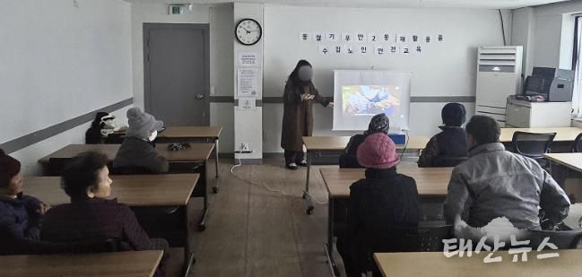 이번 교육은 재활용품 수집 과정에서 발생할 수 있는 교통사고 및 안전사고를 예방하고, 한파에 취약한 어르신들의 건강관리를 돕기 위해 마련됐으며, 안전 관련 동영상 시청을 통해 차도 통행에서 발생할 수 있는 사고 위험성을 안내하고, 재활용품 수집 시 유의 사항과 동절기 한파 대비 건강관리 요령을 중심으로 설명이 이루어졌다.