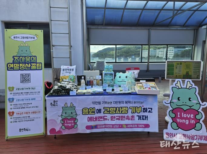 시는 고향사랑기부제에 참여한 기부자에게 에버랜드·한국민속촌 입장권, 조아용 굿즈, 백옥쌀, 한돈세트, 용인와이페이 등 80여 종의 답례품을 제공하고 있으며, 2026년부터는 뽕잎·블루베리·송화버섯 가공식품을 비롯해 여리향 쌀, 유정란, 전통식품 등 용인시 지정 특산품과 용인투어패스 등 지역 관광·체험 상품을 포함한 16종의 답례품을 추가로 선보일 예정이다.