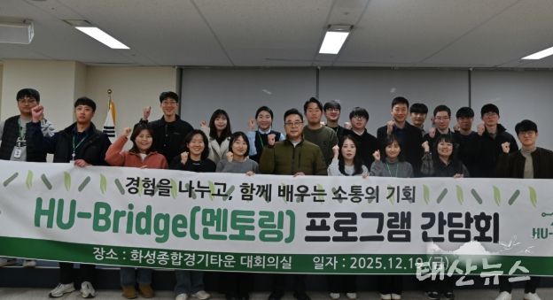 태산뉴스 이동욱 기자 | 화성도시공사는 시설관리 분야 전문 인재를 체계적으로 육성하고 현장 대응 역량을 강화하기 위해 19일 화성종합경기타운에서 ‘HU-Bridge(멘토링)’와 ‘교육동아리’ 역량강화 교육을 실시했다고 밝혔다.