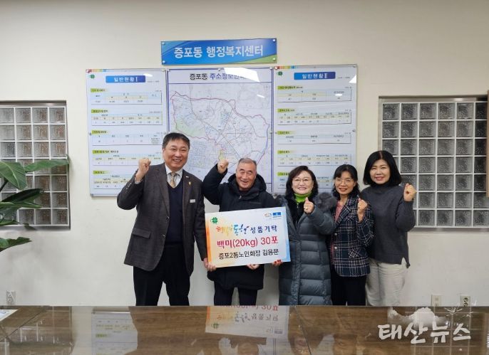 한편, 이날 기탁된 백미 30포는 증포동행정복지센터를 통해 관내 저소득층 가정에 전달될 예정이다.