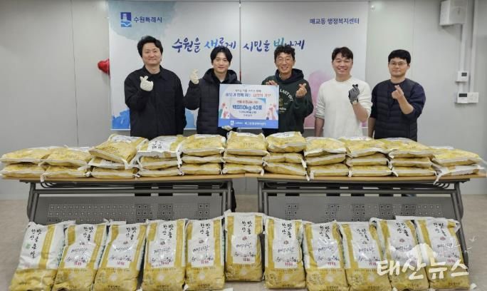 태산뉴스 이동욱 기자 | 지난 20일 수원시 수성교회(세류동 소재)에서 성탄절을 맞이하여 관내 어려운 이웃들에게 전해 달라며 수원시 팔달구 매교동에 백미 10kg 41포(1,200,000원 상당)를 후원하였다.
