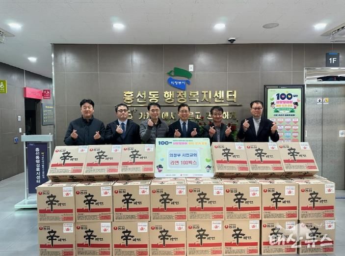 태산뉴스 이동욱 기자 | 의정부시 흥선동행정복지센터는 12월 18일 의정부시민교회가 ‘100일간 사랑릴레이 배턴 잇기’에 동참해 라면 100상자를 기탁했다고 밝혔다.