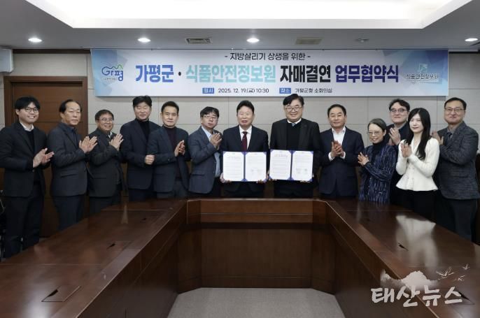 태산뉴스 이동욱 기자 | 가평군이 식품안전정보원과 손잡고 지역경제 활성화와 지방소비 촉진을 위한 상생 협력에 나선다.
