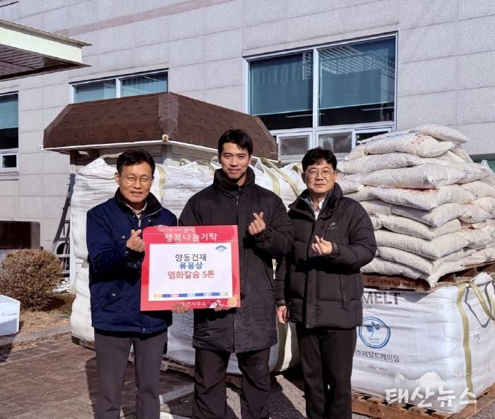 태산뉴스 이동욱 기자 | 양평군 양동면은 지난 19일 양동건재 류용상 씨가 양동면사무소를 방문해 겨울철 제설작업에 사용될 염화칼슘 5톤을 기탁하며 지역사회 안전과 이웃사랑 실천에 동참했다고 밝혔다.
